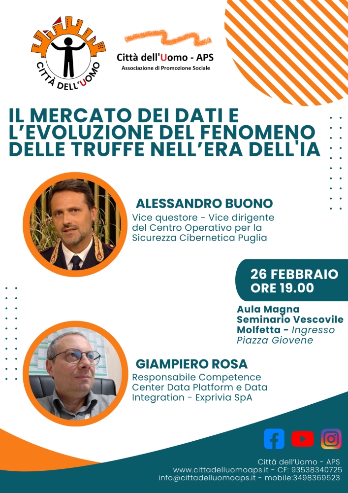 Città dell’uomo Molfetta incontro sul mercato dei dati e l’evoluzione del fenomeno delle truffe nell’era dell'IA