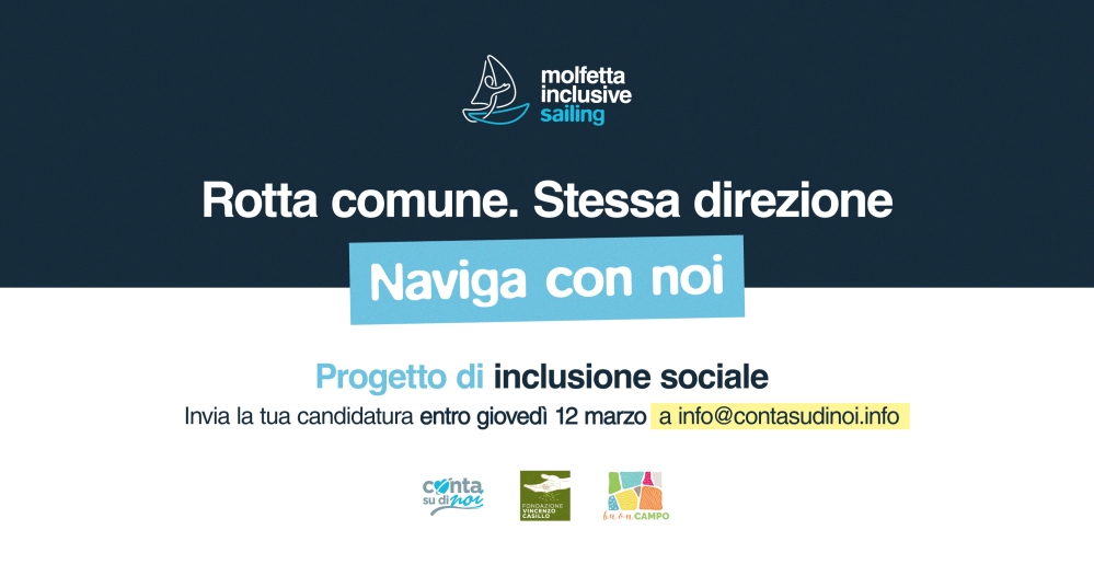 e si tratta di un percorso rivolto a ragazzi con disabilità che, attraverso attività formative e pratiche legate alla vela e al mare, costruiranno un’esperienza di veleggiata inclusiva aperta alla città. Tutto questo, valorizzando competenze, autonomie e capacità narrative. Il progetto, che nasce dalla vittoria del bando Buoncampo di Fondazione Casillo, sarà contraddistinto da molte iniziative, con l’idea di strutturare un percorso culminante nel ciclo di veleggiate. In particolare, ci saranno laboratori culturali e formativi legati a teatro e narrazione, con focus sulle tradizioni marinare e mappe in comunicazione aumentativa alternativa che porteranno i ragazzi a diventare protagonisti attivi dell’esperienza. Partecipare al progetto è semplicissimo.