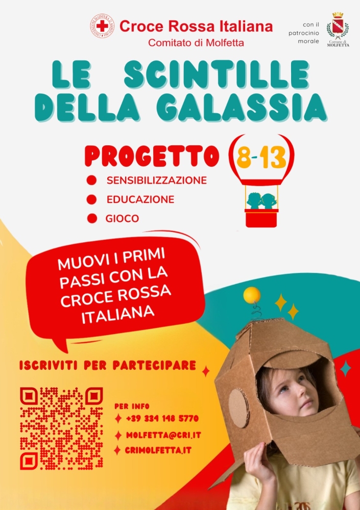 - Il Comitato di Molfetta della Croce Rossa Italiana avvia il Progetto 8-13, un’iniziativa dedicata a bambini e ragazzi di età compresa tra gli 8 e i 13 anni, con l’obiettivo di promuovere valori fondamentali come solidarietà, inclusione, rispetto, salute e cittadinanza attiva. Il progetto nasce dalla consapevolezza che investire sulle nuove generazioni significa costruire comunità più forti, consapevoli e resilienti, in linea con la Strategia della Croce Rossa Italiana e con i Principi Fondamentali del Movimento Internazionale di Croce Rossa e Mezzaluna Rossa. Attraverso attività educative, ludiche e formative, il Progetto 8-13 accompagna i più giovani in un percorso di crescita personale e collettiva, favorendo lo sviluppo di competenze sociali, relazionali ed emotive. Le attività proposte spaziano dall’educazione alla salute, alla sensibilizzazione sui temi dell’inclusione, della tutela dell’ambiente, fino alla promozione del lavoro di squadra e della partecipazione attiva alla vita della comunità. Il Progetto 8-13 rappresenta un’importante opportunità educativa per i giovani partecipanti e un valore aggiunto per l’intera comunità locale, rafforzando il legame tra la Croce Rossa e il territorio. Il Comitato CRI di Molfetta rinnova così il proprio impegno nel promuovere una cultura del volontariato, della solidarietà e dell’umanità, partendo proprio dai più giovani. Le iscrizioni al Progetto 8-13 possono essere effettuate scaricando il modulo di iscrizione disponibile sul sito ufficiale del Comitato CRI di Molfetta, al seguente link:
