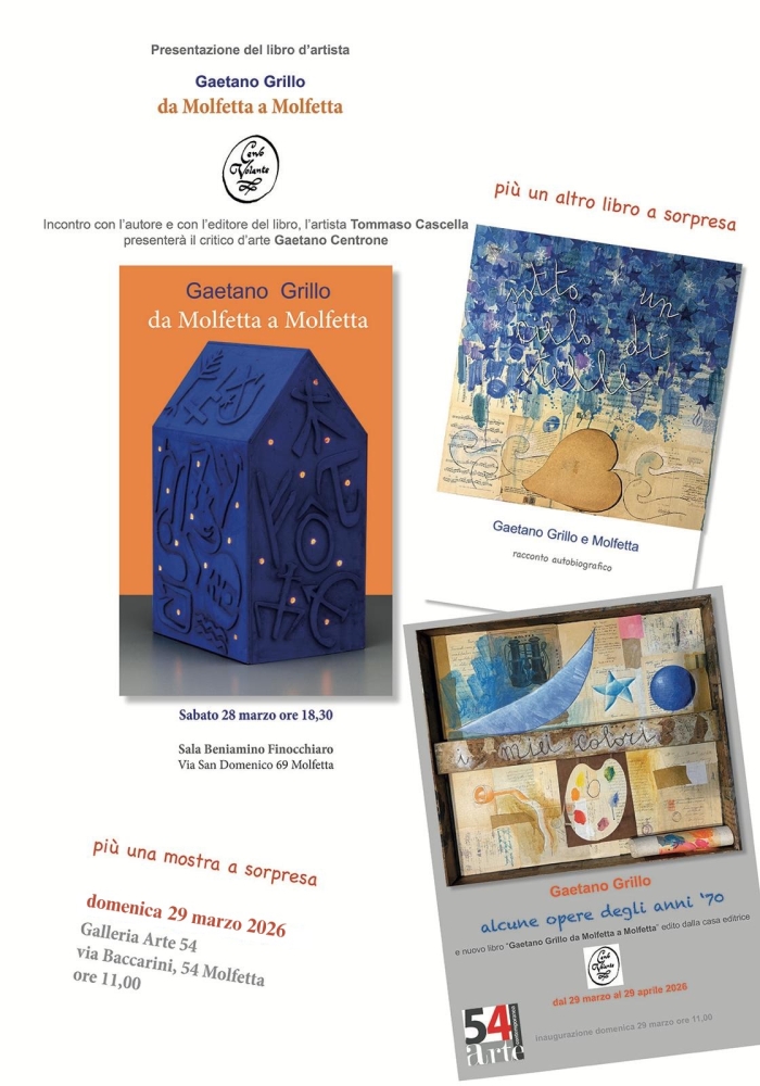 MOLFETTA - Questo weekend Molfetta si tinge dei colori e delle parole del Maestro Gaetano Grillo con un doppio appuntamento imperdibile tra arte e letteratura.