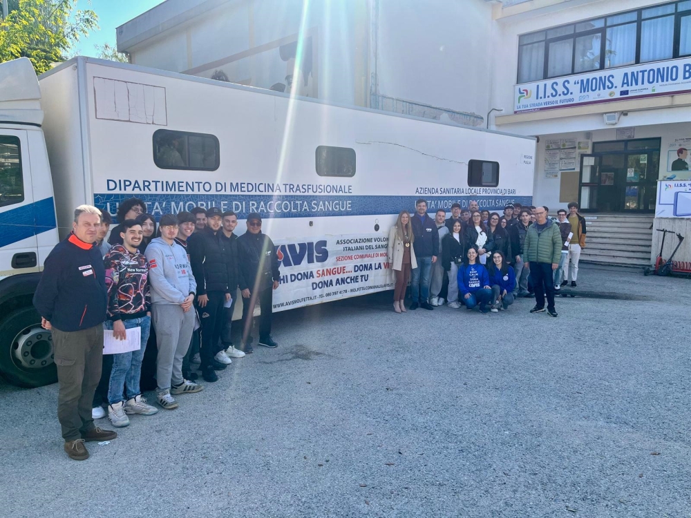 L’evento ha rappresentato il culmine del progetto “Avis Scuola Tour” diretto dalla dott.ssa Tania Magarelli, un percorso fatto di incontri, ascolto e sensibilizzazione che ha coinvolto gli studenti delle quinte classi degli istituti superiori di Molfetta. Un cammino che si è trasformato in azione: 40 alunni, insieme ad alcuni docenti, hanno scelto di donare il proprio sangue, compiendo un gesto semplice ma di immenso valore.