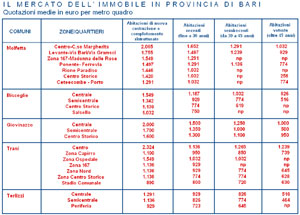 Un miliardo di vecchie lire per un appartamento di novanta metri quadri in centro. Non stiamo parlando di Bari o di Lecce, ma più semplicemente di Molfetta, che ancora oggi soffre un mercato dell'immobile con prezzi esorbitanti, tanto da spingere centinaia di nostri concittadini ogni anno a trasferirsi in città limitrofe, come Giovinazzo o Bisceglie. L'inchiesta che segue è una indagine esclusiva di “Quindici” e non vuole essere una “caccia alle streghe”, ma più semplicemente una “fotografia” della situazione del mercato immobiliare a Molfetta, per capire qual è la situazione attuale e quali sviluppi potrebbero esserci in futuro. Il mercato dell'immobile a Molfetta: bassa offerta e prezzi alle stelle Il mercato molfettese è storicamente uno dei più cari del circondario e oggi presenta prezzi molto vicini a quelli di Barletta, una città molto più grande, turisticamente più appetibile e candidata ad essere il futuro capoluogo della sesta provincia. Fino ad una trentina di anni fa, i marinai e gli emigranti portavano ricchezze nel circuito economico della nostra città, avendo come sbocco l'acquisto del bene-casa. Questo flusso di denaro portava ad un innalzamento progressivo dei prezzi degli immobili a Molfetta. Oggi, nonostante il radicale cambiamento del tessuto economico e sociale della nostra città, i prezzi si mantengono elevati soprattutto a causa della bassissima offerta immobiliare. “Molfetta è un cantiere a cielo aperto”. Era la frase che campeggiava su un manifesto di “Molfetta che Vogliamo”, movimento politico vicino a Franco Visaggio, ma a differenza di quanto qualcuno vuol far credere, tutte le gru che sormontano la nostra città non serviranno a far abbassare i prezzi degli appartamenti. E' la stessa illusione che, fra la fine degli anni Ottanta e l'inizio degli anni Novanta, si diffuse tra i cittadini di Molfetta quando si sbloccarono il Lotto 2, la zona 167 e il quartiere di fronte all'ospedale; anche allora si credeva che l'offerta sarebbe salita, facendo scendere i prezzi. Quando, in seguito, si iniziò effettivamente a costruire ci si rese conto che una buona percentuale degli appartamenti era già stata venduta, mantenendo comunque basso il numero di appartamenti liberi immessi sul mercato privato. In quello stesso periodo, in meno di dieci mesi, i prezzi delle case salirono del 30%. Oggi un' impennata dei prezzi così forte sarebbe improbabile, ma solo perché i prezzi degli appartamenti a Molfetta sono già ai massimi storici ed esiste comunque un limite fisiologico del mercato. “Ci sarà certamente una ripercussione al rialzo sui prezzi – ci ha spiegato Domenico Corrieri, agente immobiliare e membro della Federazione italiana agenti immobiliari professionali (Fiaip) – ma c'è anche il rischio che si continuino ad acquistare fuori Molfetta tipologie di appartamenti diverse da quelle richieste”. Bisogna considerare, comunque, che solo negli ultimi tre anni, i prezzi sono saliti del 40%, tanto da meravigliare gli stessi operatori del settore, e probabilmente continueranno a salire nei prossimi anni, soprattutto alla luce della carenza di appartamenti di qualità presenti oggi sul mercato. Facendo un sondaggio fra le varie agenzie immobiliari di Molfetta, si giunge alla conclusione che per un appartamento di media qualità, che non richieda particolari lavori di manutenzione e con una superficie utile di novanta metri quadrati, non si spende meno di 250mila euro. Dai sondaggi svolti emerge, inoltre, che i prezzi degli appartamenti in periferia sono inferiori appena del 35-40% rispetto a quelli degli appartamenti in centro, quando normalmente gli appartamenti periferici costano meno della metà di quelli centrali. Dunque le gru che costellano il cielo molfettese serviranno a ben poco per chi vuole comprare casa in città, anche perché gli edifici in fase di completamento sono quasi tutti delle cooperative. Ma partiamo dall'inizio.