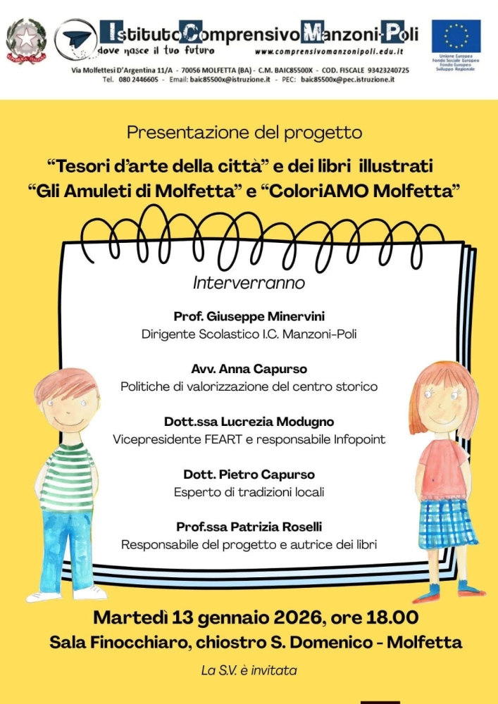 Da questa semplice domanda nasce il Progetto “Tesori d’arte della città”, un percorso educativo che invita a riscoprire il patrimonio storico e artistico di Molfetta attraverso lo sguardo curioso dei più giovani.