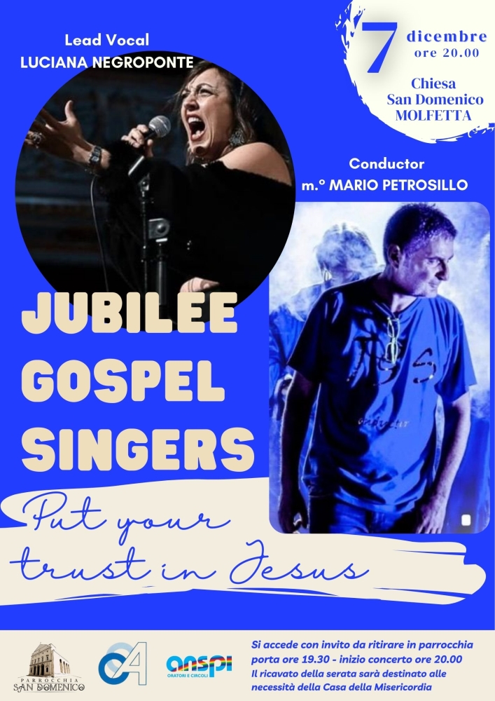 A dirigere l’ensemble sarà il M° Mario Petrosillo, che guiderà il coro in un repertorio ricco di sonorità gospel e spiritual, con il messaggio centrale “Put your trust in Jesus”.