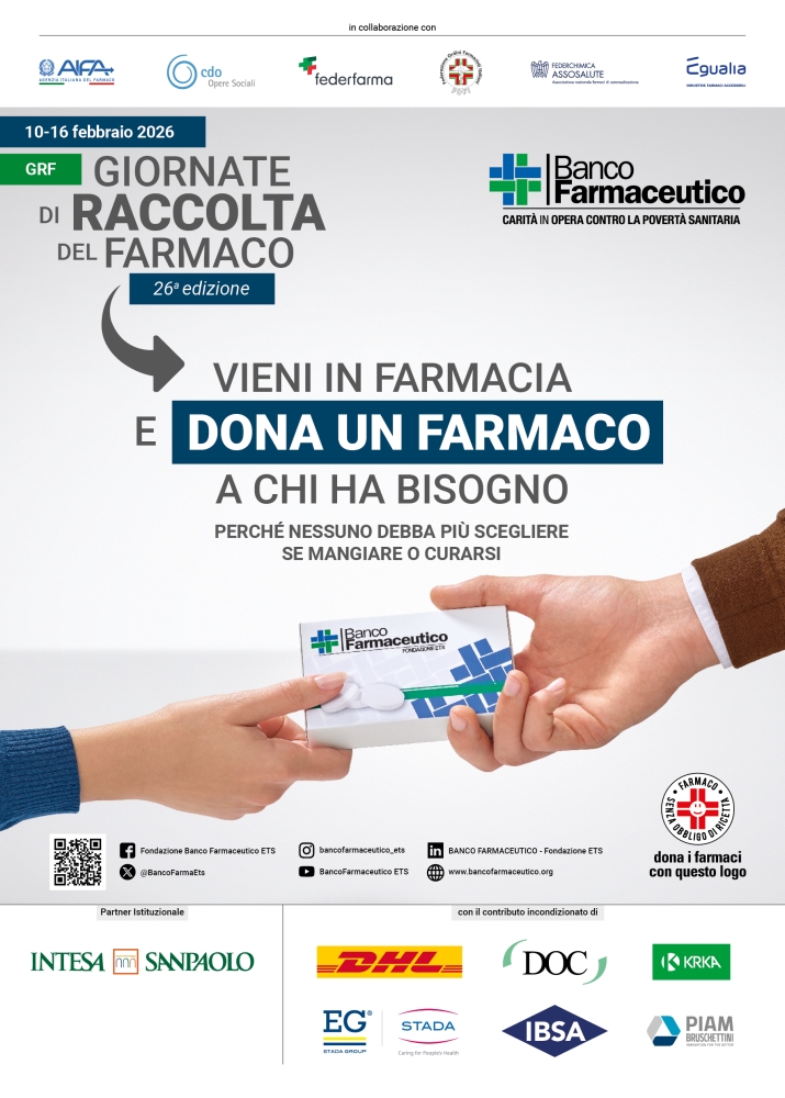 Aumenta ogni anno, anche in Puglia, il fabbisogno di farmaci per i poveri in difficoltà, soprattutto per i minori. Nell'edizione 2025 a livello regionale sono state raccolte oltre 43000 confezioni di farmaci, per un valore di oltre € 220.000,00, che hanno aiutato 15.350 ospiti di 171 enti e 392 farmacie che hanno aderito all'iniziativa. E’ questo il dato più saliente che accompagna la 26a edizione di Raccolta del Farmaco che si svolgerà dal 10 al 16 febbraio prossimo in tutta Italia. Anche quest’anno in Puglia le farmacie aderiranno alla giornata del Banco Farmaceutico e sosterranno realtà del territorio regionale. Sarà possibile acquistare un farmaco da banco per donarlo a chi è in difficoltà già nel corso della settimana. La giornata clou è comunque quella del 14 febbraio, nel corso della quale le farmacie ospiteranno i volontari a supporto dell’iniziativa che rappresenta uno strumento di solidarietà concreta per contrastare il crescente disagio economico-sociale che colpisce in misura sempre maggiore i cittadini più fragili.