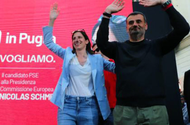 Antonio Decaro esulta con la segretaria del Pd, Elly Schlein