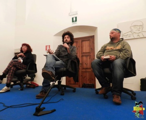 L’ incontro è stato moderato dal giornalista Giacomo Pisani, redattore di Quindici che con grande professionalità e passione per la tematica sulla resistenza di oggi ha dialogato con Nicoletta Dosio del movimento No Tav e Elio Teresi del movimento No Mous (nella foto).