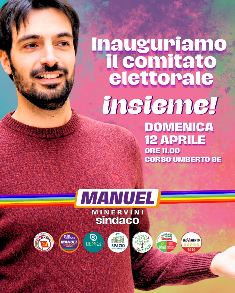 MOLFETTA - Si terrà domenica 12 aprile alle ore 11 l’inaugurazione del comitato elettorale del candidato sindaco Manuel Minervini, sito in Corso Umberto I, 9 e/f. Lo spazio allestito ospiterà un’iniziativa, a cura della coalizione, in cui interverrà lo stesso candidato alla carica di primo cittadino. Attività ludiche per i più piccoli e tanta socialità animeranno la nuova sede.