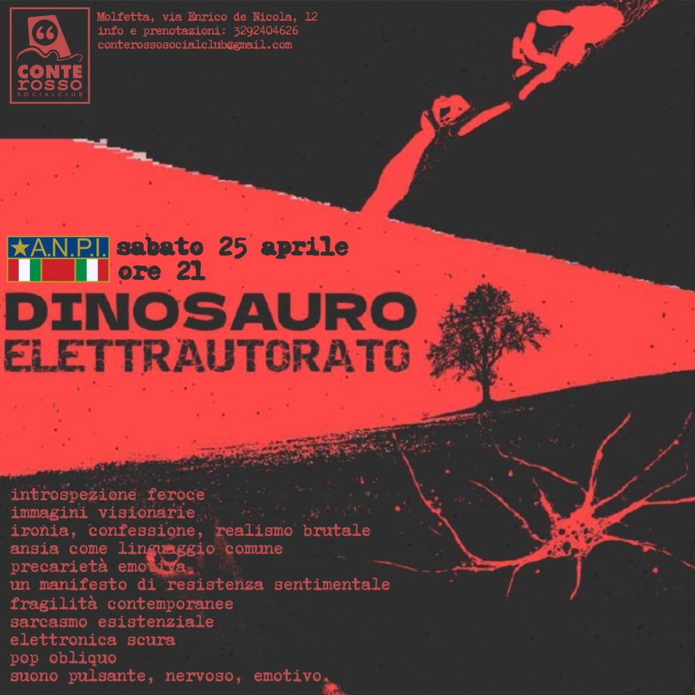 Sabato 25 aprile, ore 21, presso Conterosso Social Club a Molfetta in Via Enrico de Nicola, 12