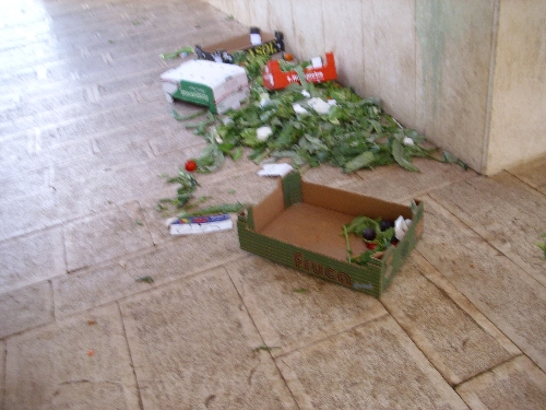 Nulla è cambiato. L’andazzo è sempre quello, a quanto pare peggiorato. Numerose le denunce di Quindici e di molti cittadini di Molfetta, stanchi di vivere in una città-pattumiera, appannaggio di carte, foglie di verdura, spazzatura, cassette delle frutta, fruttivendoli, ecc.