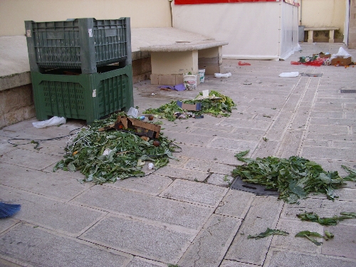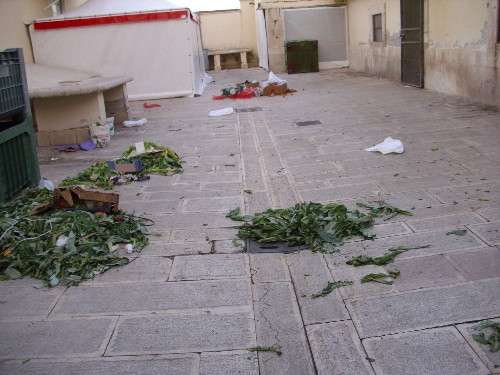Dopo l’approvazione del piano del commercio e le promesse dell’amministrazione Azzollini, a Molfetta fruttivendoli e pescivendoli continuano a sporcare i luoghi pubblici, senza il rispetto delle minime norme di decoro e igiene pubblica.
