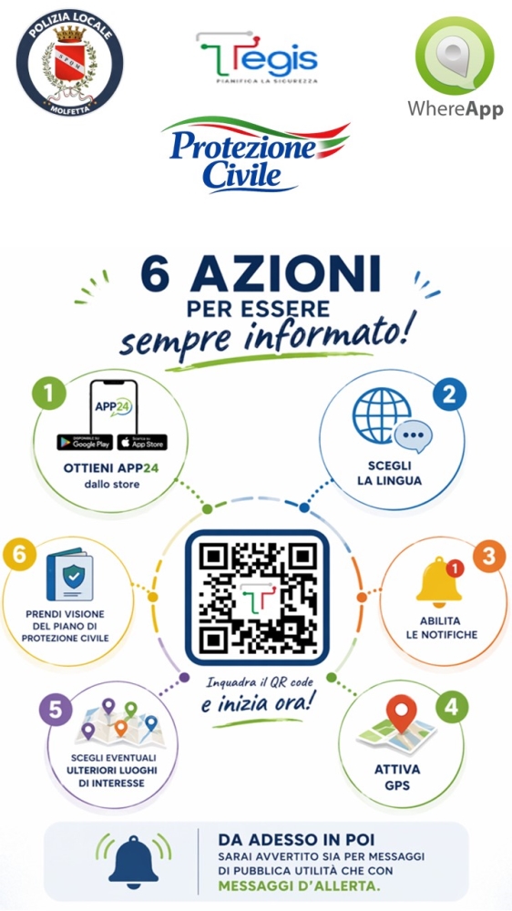 MOLFETTA - La Polizia locale di Molfetta ha completato il percorso di digitalizzazione del Piano di Protezione Civile grazie alla piattaforma TEGIS24, attivando l’app App24 e rafforzando così la capacità di informazione, prevenzione e gestione delle emergenze.