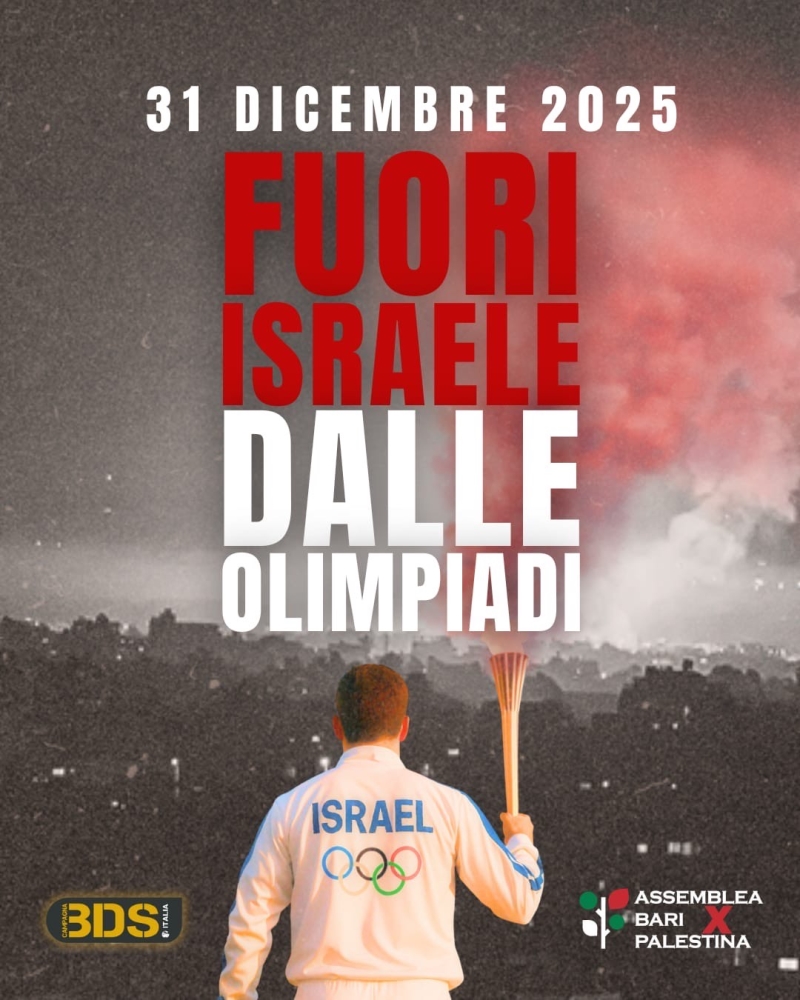 È l’occasione per manifestare il nostro dissenso. Chiediamo quindi a ognuno di voi, a ogni cittadino barese, a ogni persona che vive e attraversa la città, di esprimere la contrarietà alla presenza di Israele alle Olimpiadi.