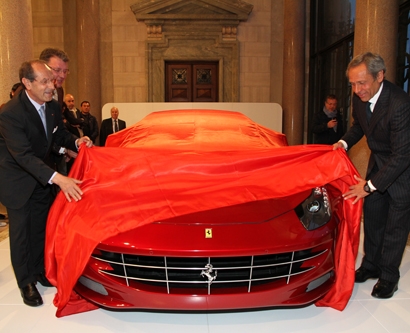 BARI - Nella prestigiosa cornice della Sala Colonnato della Provincia di Bari è stata presentata ieri, per la prima volta per il Sud Italia, la nuova vettura Ferrari FF. L'iniziativa è stata promossa dalla Provincia di Bari insieme con la Radicci Automobili SpA. Motore V12, 660 cavalli a 8.000 giri e accelerazione da 0 a 100 km/h in 3.7 secondi e con velocità massima di 335 km/h, queste alcune delle caratteristiche del nuovo gioiello della scuderia di Maranello inaugurato dal Presidente della Provincia di Bari, Francesco Schittulli, dall'Assessore al Personale, Sergio Fanelli, e dall'amministratore della Radicci SpA, Vito Radicci.