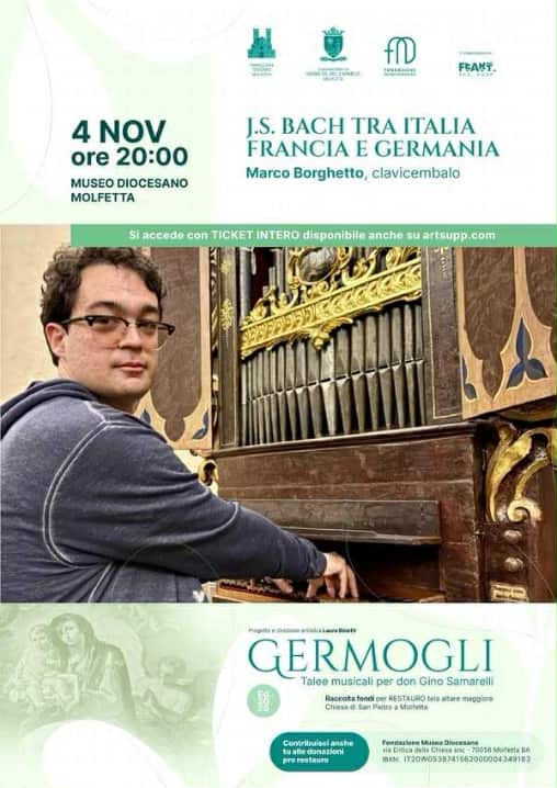 Rassegna musicale “Germogli” a Molfetta, Marco Borghetto (clavicembalo) in J.S. Bach Tra Italia Francia E Germania
