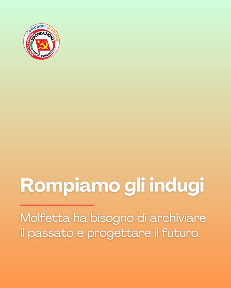 In questa direzione, Rifondazione Comunista ha messo a disposizione la propria esperienza, la militanza e il radicamento costruito negli anni sul territorio, promuovendo sin dall’inizio del 2025 un tavolo di confronto con le forze progressiste. Lo abbiamo fatto nella convinzione che il cambiamento non possa essere affidato alle sole forze politiche, ma richieda la riattivazione di tutti i corpi intermedi della città: associazioni, movimenti, sindacati e realtà sociali che si riconoscono nella tradizione progressista di Molfetta, per dare gambe, testa e cuore a un progetto collettivo.