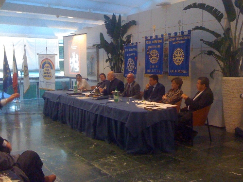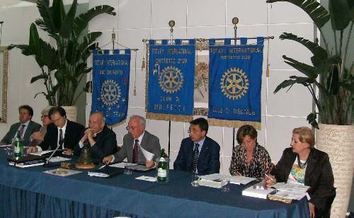 MOLFETTA - “Un attento lavoro di ricerca che consente di aprire nuovi scenari sulla vita del Giaquinto e dei pittori Porta”, così è stata definita l’opera scritta da Mons. Pietro Amato grazie a diversi e scrupolosi studi condotti in Italia e in Europa, su Corrado Giaquinto. L’opera è edita dal Rotary Club di Molfetta, presieduto da Pietro Facchini, per realizzare un service a favore della popolazione africana del Burkina Faso (Nella foto, da sinistra: l'assistente di mons. Amato, Mimmo Franco presidente Rotary Trani, Mons. Amato, Pietro Facchini, Luigi Logoluso, presidente Rotary Bisceglie, Rosa Lorusso e il sindaco di Molfetta Antonio Azzollini).